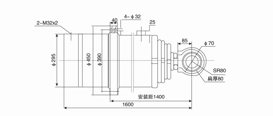 250/220、160/150、100/90:三級缸,缸徑分別為250、160、100,桿徑分別為220、150、90