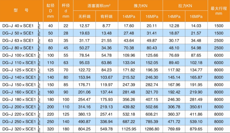 L:活塞桿連接方式代號 L=螺紋連接;E=耳環連接